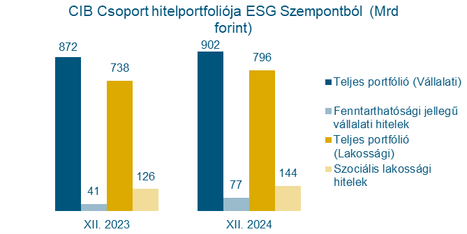 A bank finanszírozási portfóliója folyamatosan növekszik, 2024-ben a ariali portfólió összértéke meghaladta a 900 milliárd forintot, a lakossági portfólió összértéke pedig közel 800 milliárd forintot tesz ki. A vállalati fenntartható hitelek aránya 77 milliárd forint, a lakossági szociális hitelek aránya pedig meghaladja a 140 milliárd forintot.